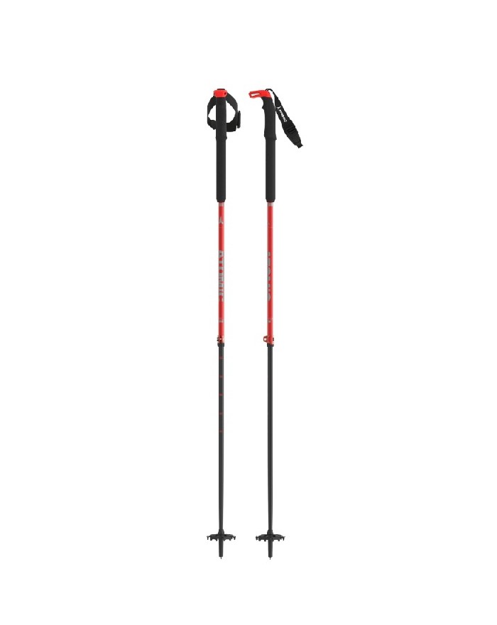 Atomic BCT Touring Carbon SQS to najwyższej klasy kije skiturowe dla skialpinistów: są odblaskowe, wytrzymałe i lekkie, wyposażone w rozszerzony uchwyt EVA i system szybkiego uwalniania SQS.
